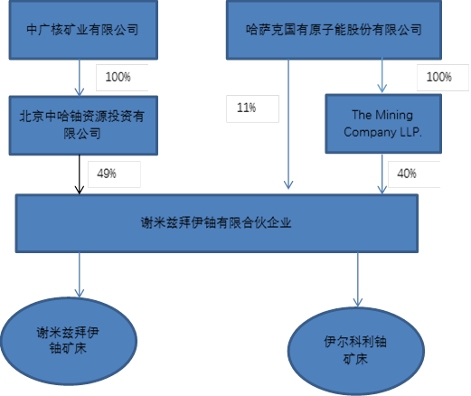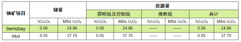 2015年中廣核礦業(yè)完成哈薩克斯坦謝米茲拜伊鈾有限合伙企業(yè)49%股權(quán)的收購,并獲得旗下兩座在運(yùn)營鈾礦山(謝米茲拜伊鈾礦床和伊爾科利鈾礦床)49%的天然鈾產(chǎn)品包銷權(quán),成為一家主業(yè)清晰的鈾資源開發(fā)和貿(mào)易公司。 謝米茲拜伊有限合伙企業(yè)的架構(gòu) 謝米茲拜伊鈾礦床 謝米茲拜伊鈾礦井場 謝米茲拜伊鈾礦現(xiàn)場鉆探 謝米茲拜伊鈾礦產(chǎn)品液加工車間 伊爾科利鈾礦床 伊爾科利鈾礦辦公樓 伊爾科利鈾礦產(chǎn)品液加工車間 伊爾科利井場 資源量及儲量(2021.12.31)